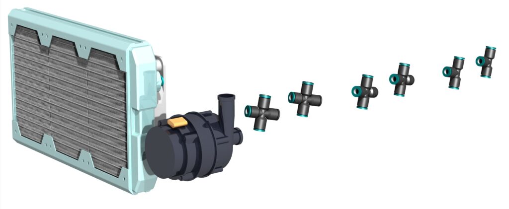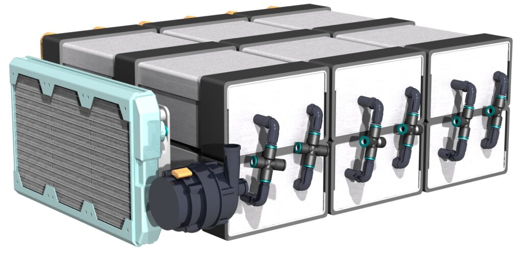 – Liquid cooling with outboard radiator and pump